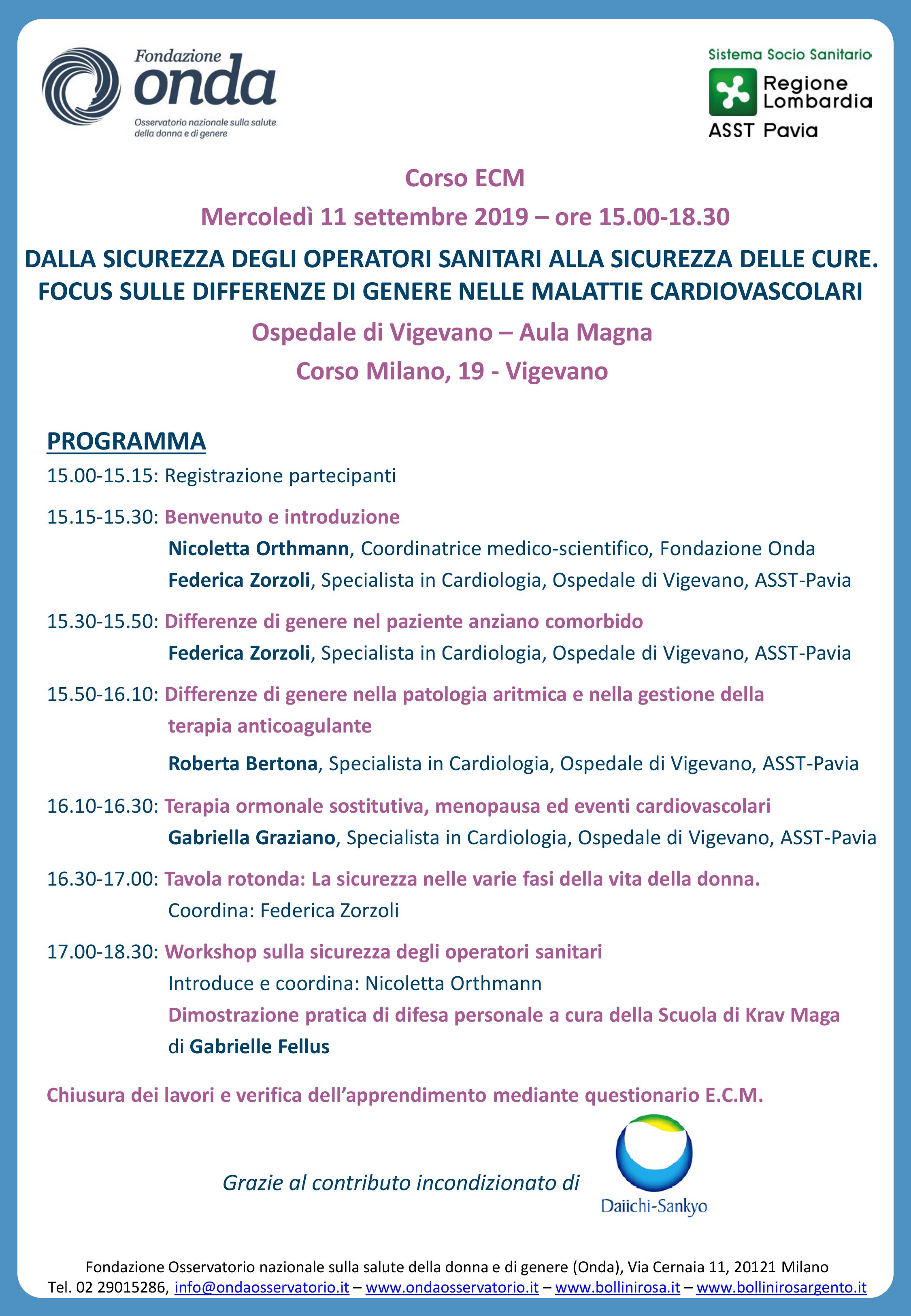Si terrà mercoledì 11 Settembre 2019 il corso ECM organizzato d Fondazione Onda, in collaborazione con l’ASST di Pavia,